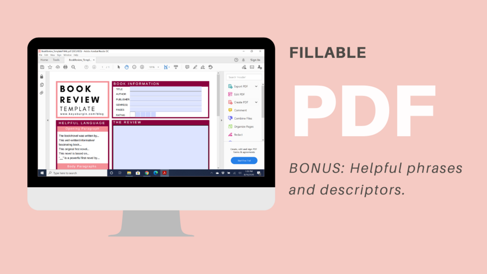 The Book Review Template is perfect for taking quick notes on how you feel about the characters, theme, plot, or whatever seems important to you. Additionally, there are helpful phrases and descriptors to help write your review. Instant download with PDF format. Completely fillable PDF. Type directly into the document.